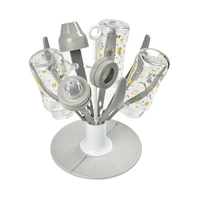 - Base dobrável: adaptada aos pequenos espaços e prática para os deslocamentos. - Grande capacidade: pode conter até 8 mamadeiras e acessórios. - Abertura e fechamento em forma de corola: manipulação da haste central com uma mão. - Limpeza: lavar à mão ou na máquina de lavar louça. - BPA gratuito